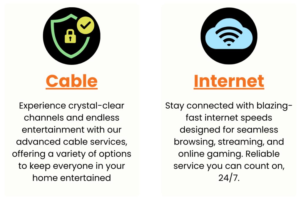 Experience crystal-clear channels and endless entertainment with our advanced cable services, offering a variety of options to keep everyone in your home entertained
